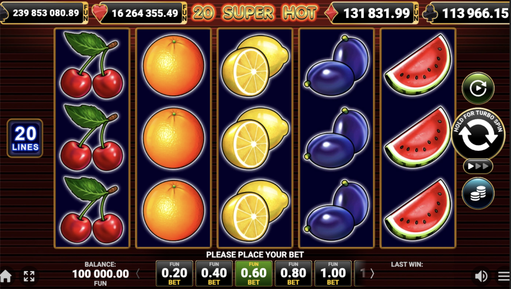 Busca “20 Super Hot”: Lo encontrarás en la sección de “Clásicos” o “Frutas”.