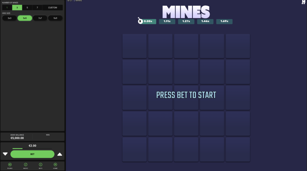 Mines es perfecto para los jugadores que se estresan con la velocidad de Aviator.